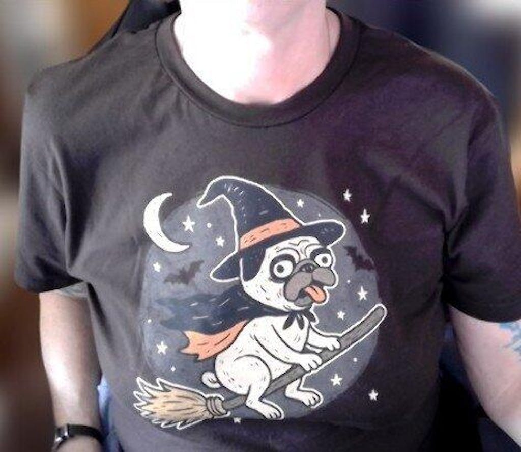 I have lots of shirts from Pugglez and I love them all. Great quality t-shirts and really funny/clever designs for us pug-lovers. This witch pug shirt really cracks me up and is perfect for pre-Halloween and Halloween day (if you aren't going to dress up). Pugglez t-shirts are pretty much my entire wardrobe during warmer months!